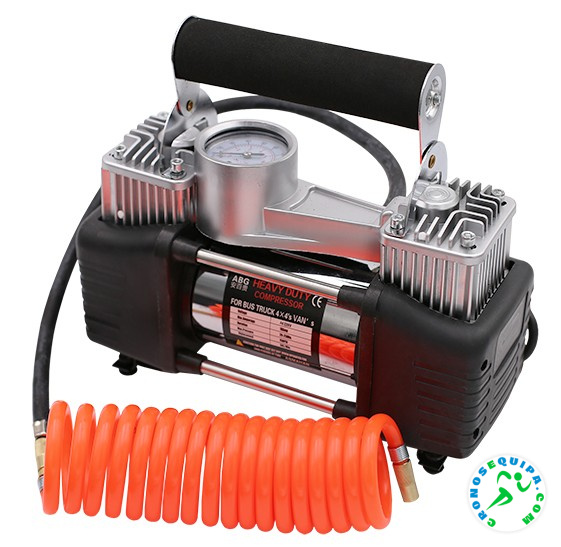 Compresor de dos cilindros. Presión máxima de arranque: 200PSI. Presión media de trabajo: 150PSI.
