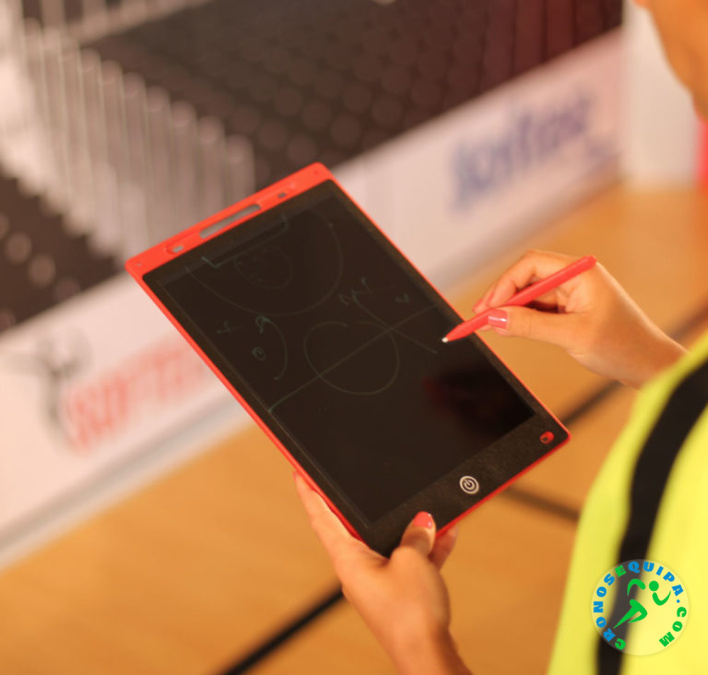 Esta tableta gráfica de escritura permite al entrenador dibujar la táctica de juego para cualquier deporte, sea basket, fútbol, vóley u otra modalidad.