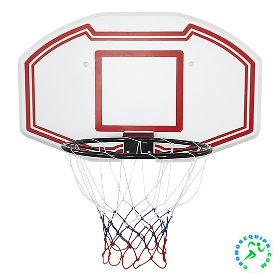 Compuesto por tablero de poliéster, aro y red. Fácil colocación a muro o paredes. Diámetro del aro: 45cm
