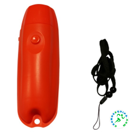 Silbato eléctrico con batería. 3 tonos. Higiénico. Pila de 9 voltios incluida. Cordón: 40cm. Medida: 12cm. Peso: 85 grs,.